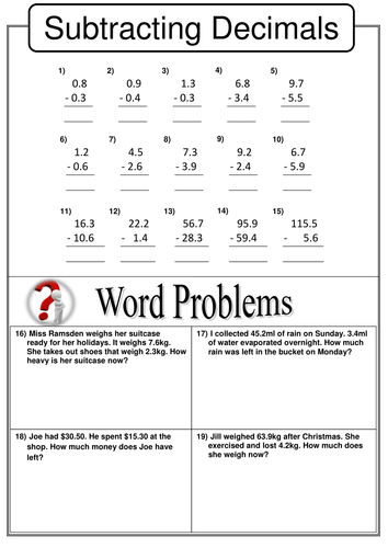 Some of the worksheets displayed are Decimals work, Addingsubtracting decimals a, Adding and subtracting decimals, Addingsubtracting decimals date period, Adding and subtracting decimals, Addingsubtracting decimals a, Exercise work, Decimals subtraction word problems.