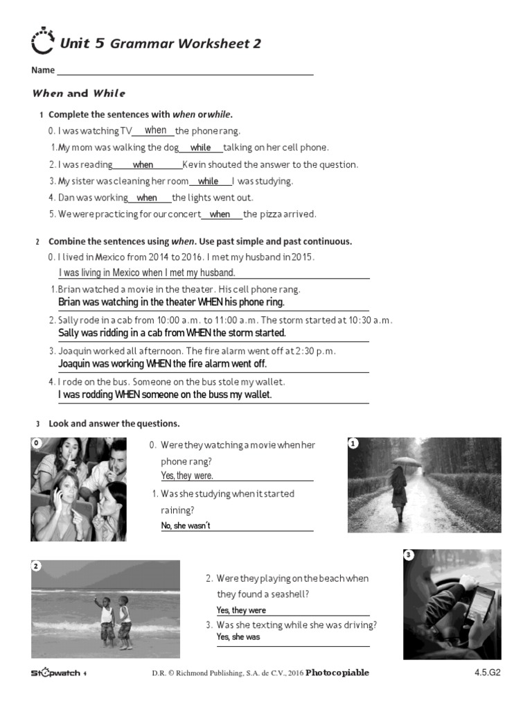 Unit 4. Worksheet 1. Exercise 1 1 talking 2 looking 3 singing 4 shaking 5 walking 6 holding. Answers. Exercise 3 1 watching 2 following 3 breathing 4 moving 5 running. Unit 4. Worksheet 2. Exercise 1 1 will 2 won't 3 will 4 won't 5 will 6 will 7 I'm going to 8 I'll 9 won't.