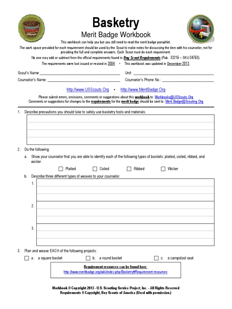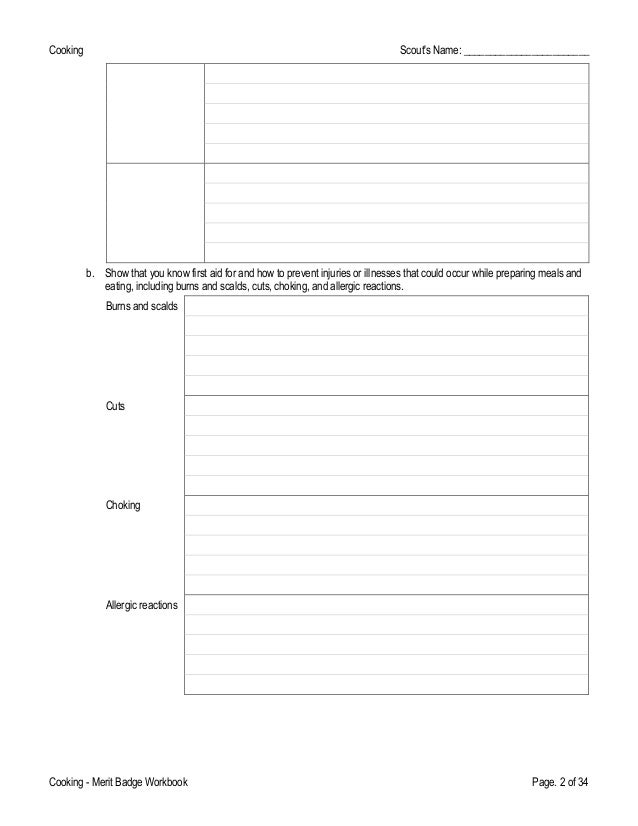 Meritbadge.org, which used to be the worksheet . Scouts use the cooking merit badge pamphlet to earn the cooking merit badge, which introduces principles of cooking that can be used both at home or in the . In school, we're taught not to plagiarize, and the same is true for scouting worksheets. Other ideas might come from your parents, other.