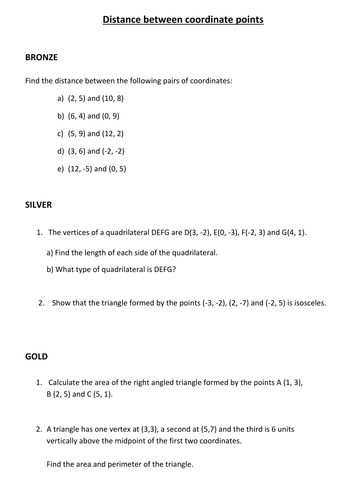 Finding the distance between two points worksheet