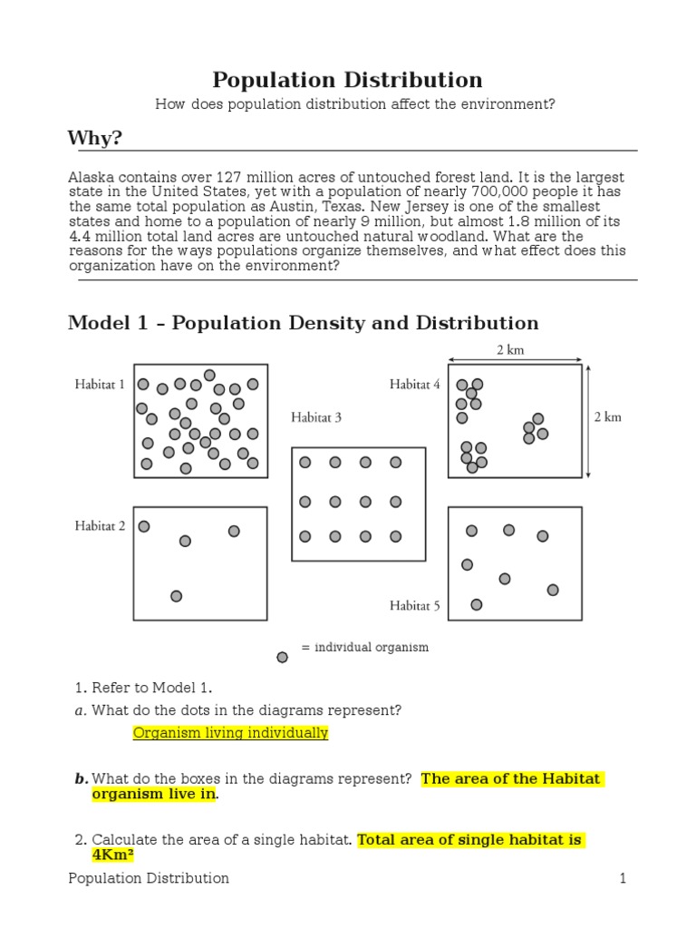 Population distribution worksheet answers
