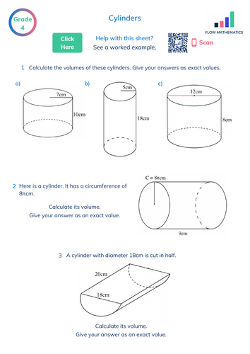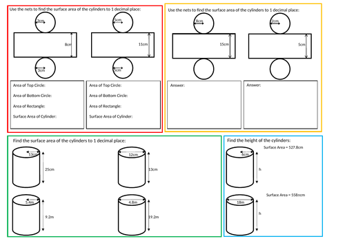 Question 1: Work out the surface area of each of the following cylinders. ... Question 4: A cylinder has a height of 18cm and volume of 1715cm³.3 pages