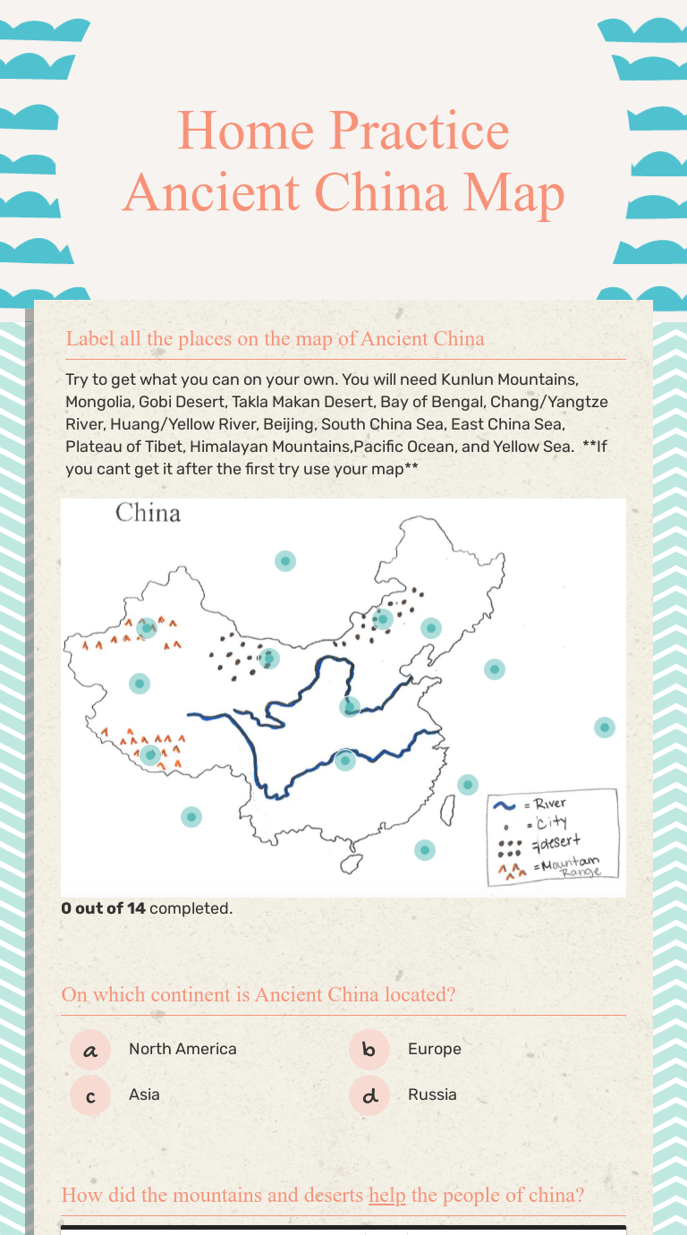 About this Worksheet. This is a free printable worksheet in PDF format and holds a printable version of the quiz Geography of Ancient China Map Activity.By printing out this quiz and taking it with pen and paper creates for a good variation to only playing it online.