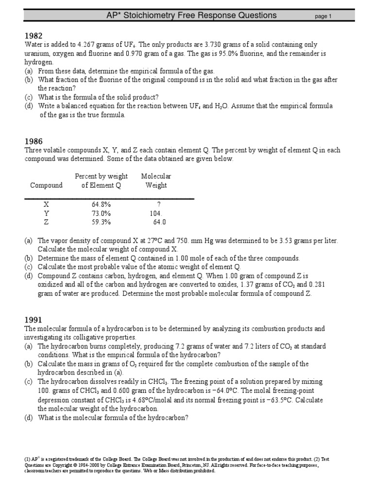 Stoichiometry 3 suited to the multi-step problems you will face on the AP Exam. Secondly, these techniques better prepare you to work the complex equilibrium problems you will face later in this course. The first problem you must solve in the free response section of the AP Exam will be an equilibrium