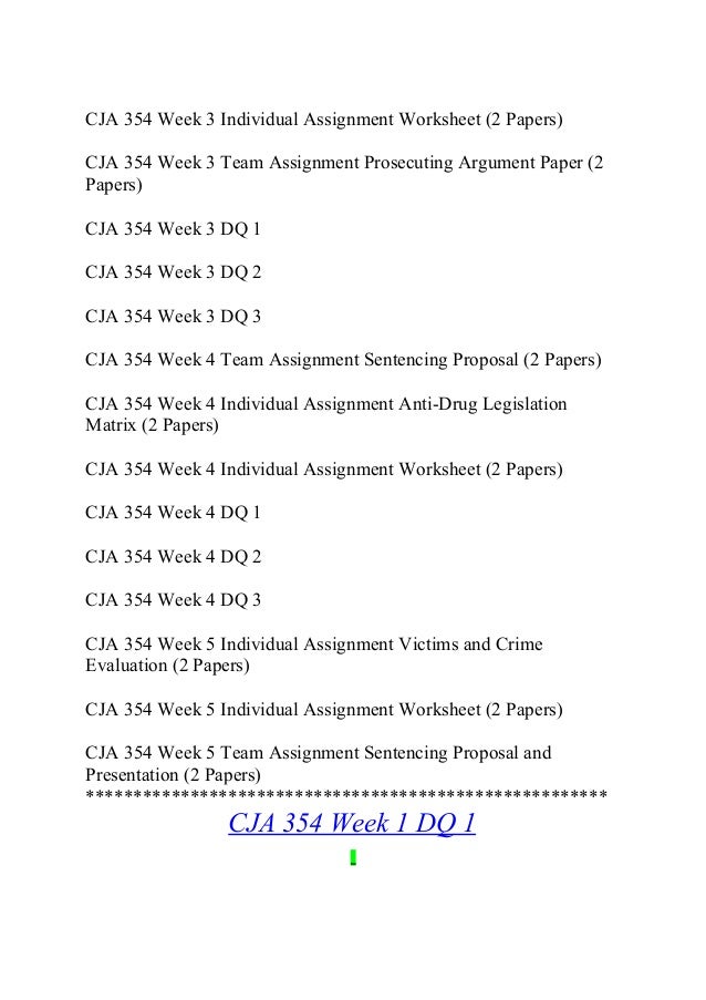 CJA 354 Week 1 Individual Assignment Criminal Law Paper (Uop) CJA 354 Week 1 DQ 1 (Uop) CJA 354 Week 1 DQ 2 (Uop) CJA 354 Week 1 DQ 3 (Uop)... See More Cja 354 week 5 individual assignment worksheet