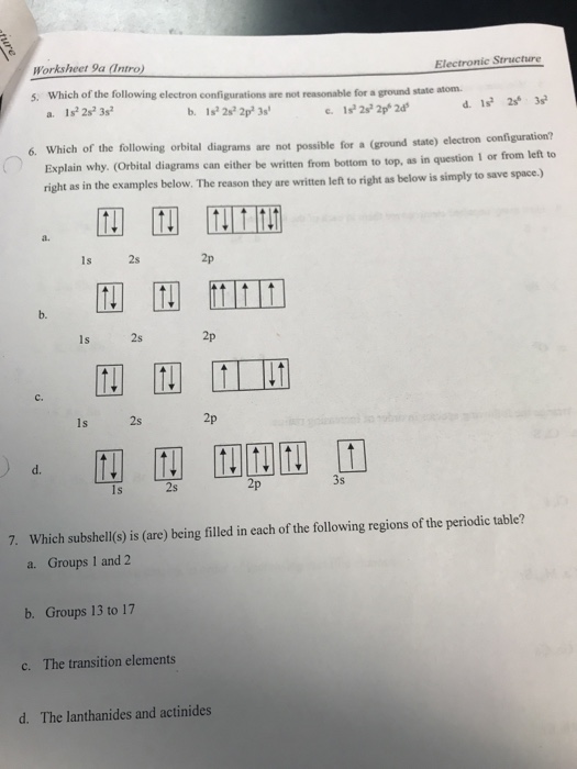 The 2px orbital lies on the x axis. This is one of many possible answers 5. Use the orbital filling diagrams to complete the table. This worksheet will help students understand how electrons fill into orbitals and how orbital diagrams are drawn using spdf configuration.