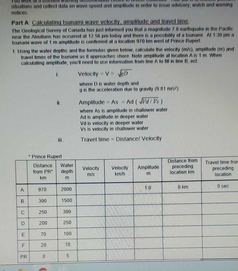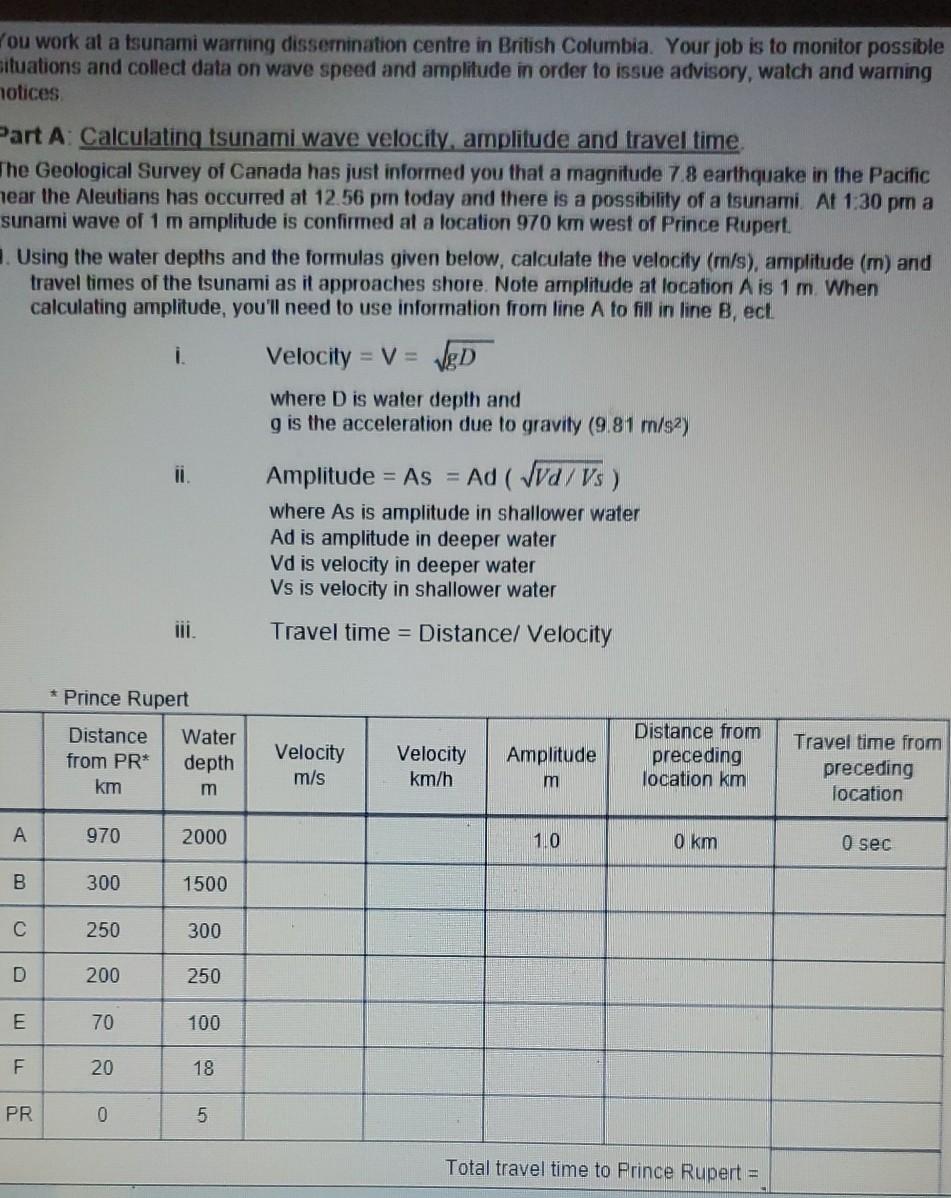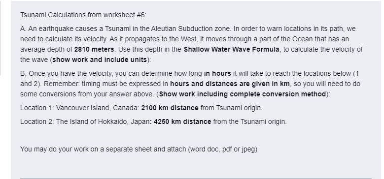 Wave velocity calculations worksheet.