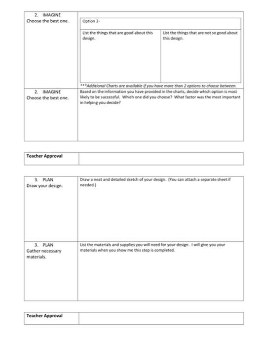 Jan 15, 2022 · Worksheet by explaining how they would follow all the engineering design process steps to design a picnic for their friends. This exercise assesses students' comprehension of the design process, provides them with practice in thinking through all the design process steps, and connects the engineering design process to every day design …