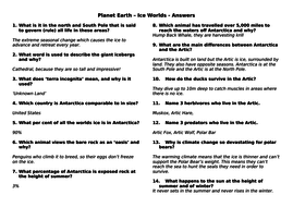 Planet Earth Ice Worlds Worksheet. advertisement Name: _____ Period: _____ Date: _____ Planet Earth - Ice Worlds Based on the BBC Planet Earth DVD 1. What is all life in the arctic and Antarctic governed by? The Antarctic 2. The Antarctic Circle is a line of latitude at 66°S that defines the Antarctic region. ... Input it if you want to ...