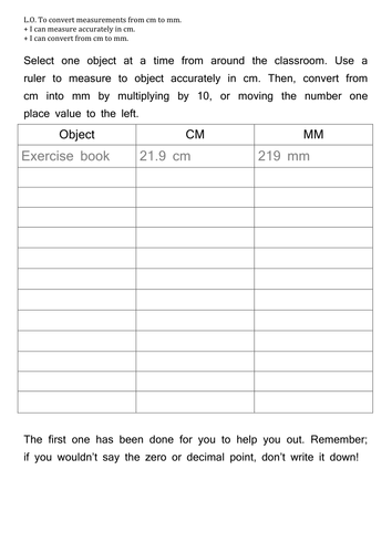 Converting cm to mm worksheet