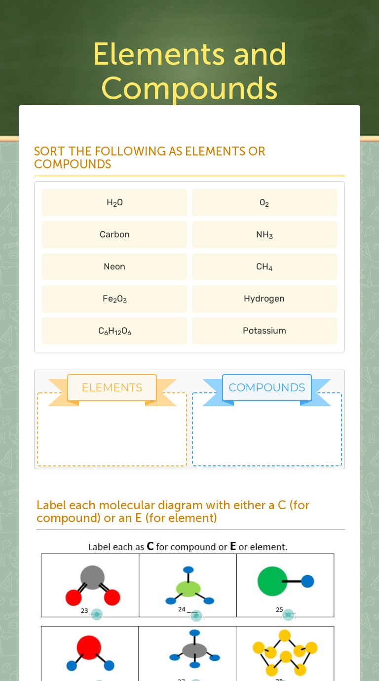 Elements vs compounds worksheet