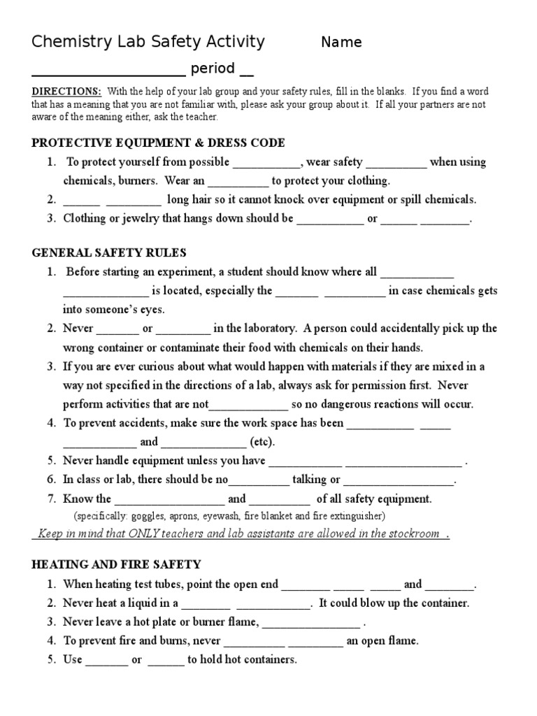 Lab safety worksheet chemistry