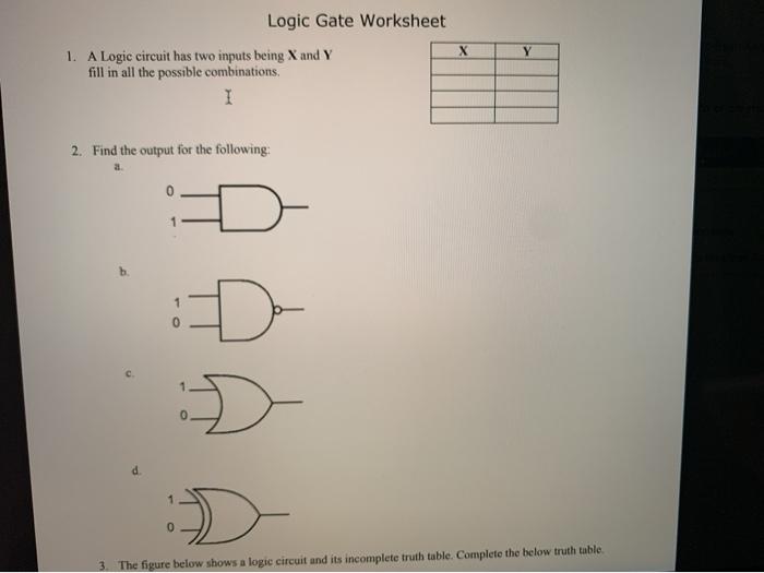 Logic Gates Worksheet - Truth Tables Label these basic logic gates and fill in their truth tables. gate gate gate This gate takes two inputs and gives an output if either one input or the other input or both inputs are true This gate takes one input and gives an output that is the opposite value to the input This gate takes takes two