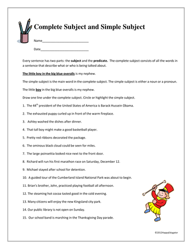 Simple Subject Complete Subject Worksheet - Alv Daily 15.02.2022 · The subject of a sentence refers to the person thing or idea doing or being that something. Writing With Them Worksheet Write three complete sentences. A simple predicate is the verb. My father took his children to the airport. Complete and Simple Subjects. 2nd through 4th Grades. Discover lesson plans practical worksheets engaging games interactive stories …