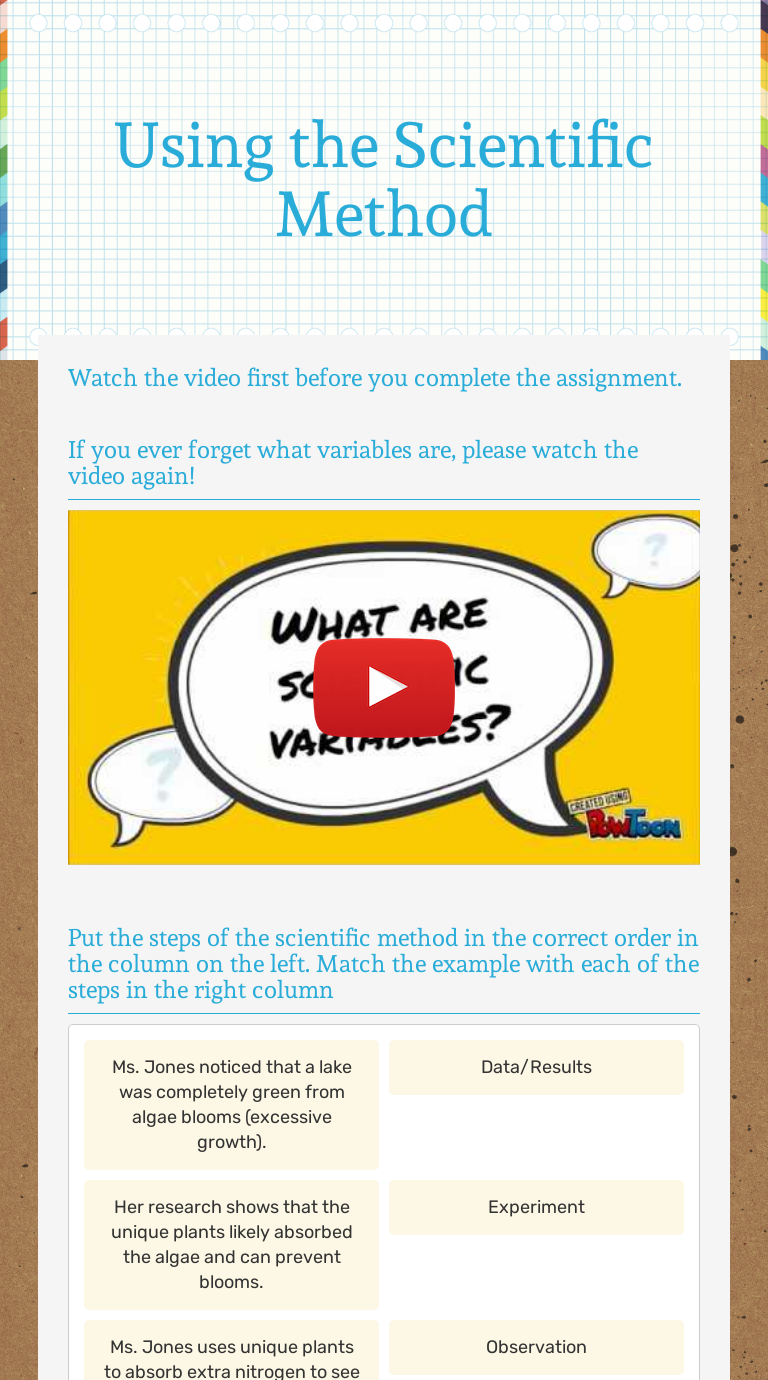 Scientific Method Worksheet (answer key included) by The ... Ensure that your students understand The Scientific Method with this FREE and EDITABLE worksheet/assessment, complete with an answer key.. You may also be interested in my.... ⭐ Scientific Method BINGO Game (no prep). ⭐ Scientific Method Introduction Activity [Print and Go]. ⭐ Scientific Method Lab Activity [5 minute set-up]. ⭐ Scientific Method Maze Worksheet [Print and Digital for ...
