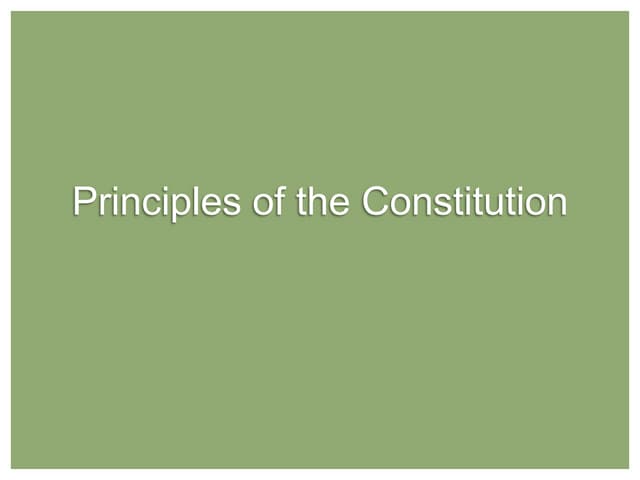 7 principles of the constitution? - Answers Seven Principles of the Constitution: Popular Sovereignty - the people rule, they have the power through voting. Separation of Powers - power is Checks and Balances - each branch of government limit hte power of the others such as the President (Executive Branch) being able to veto a bill from...