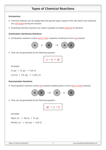 Chemical Reactions Types Worksheet Chemical Reactions Types Worksheet August 15, 2021 admin Small analysis tubes and a analysis tube rack 1-2 pieces of zinc pellets 1-2 pieces of advance shot 1-2 pieces of aluminum attempt (aluminum antithesis discouraged) 1 baby band of magnesium ribbon Any added metals that are calmly attainable (e.g., chestnut wire, an adamant nail, etc.)