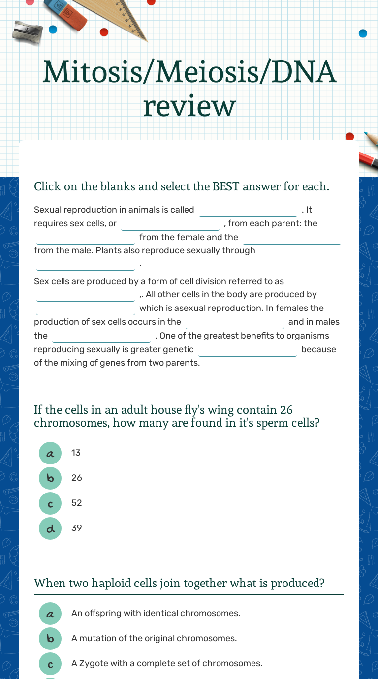 Cell Reproduction Review Worksheet - Blogger Mar 25, 2020 · Cell reproduction review worksheet. 9th 12th science meiosis and sexual reproduction. This replacement occurs through the process of. This worksheet has 5 terms placed in a crossword puzzle and 3 fill in the blank questions. Question types include true false word bank and completing a table about the differences between interphase.