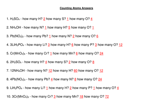 Practice Counting Atoms Worksheet Answer Key - Universal ... Classwork practice counting atoms worksheet directions for each problem 1 write down the different elements in each compound. This 1 page editable worksheet with answer key contains questions to help students count the number of atoms found in a chemical formula. Identify the coefficients and subscripts in the following formulas.