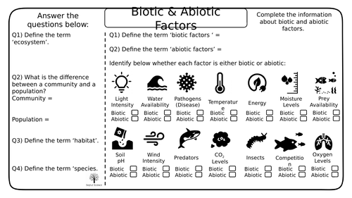 Biotic vs. Abiotic Factors Worksheet with Answer Key ... How to Use a biotic vs. abiotic factors worksheet with answer key Emergency Sub Plans. If you're feeling a little sick and need a day to rest, the Biotic & Abiotic Practice would be an excellent way to allow students to work on their own (either digitally or on paper) without a lot of speaking required on your part. To make things even better, you'll be supporting literacy in the classroom ...