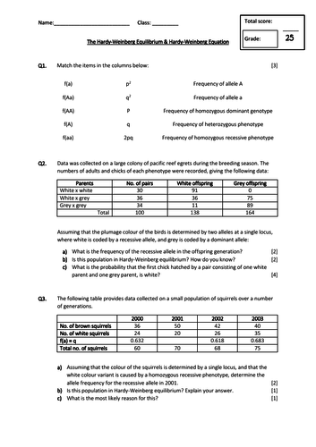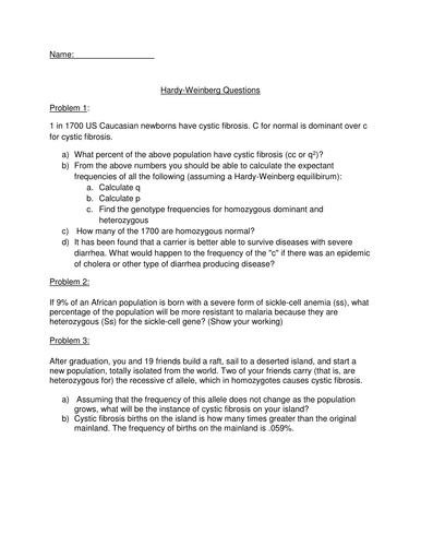 Hardy Weinberg Worksheet #2 Answer Key » Complete Possible ... Hardy weinberg problem set answer key mice. There are two sections. Population Genetics Ii Population Genetics Ii Hardy Weinberg Principle Equations To Remember P Frequency Of A1 Q Frequency Of A2 P Q 1 P2 Expected Course Hero Problem Set 2 The Answer Keydoc 30 pts Problem Set 2.Hardy weinberg worksheet #2 answer key. AP […] Hardy-Weinberg (practice) - Khan Academy Applying the Hardy-Weinberg equation. Discussions of conditions for Hardy-Weinberg. Allele frequency & the gene pool. Mechanisms of evolution. Practice: Hardy-Weinberg. This is the currently selected item. Genetic drift, bottleneck effect, and founder effect. Genetic drift. Natural selection in populations. Hardy Weinberg Worksheets | Teachers Pay Teachers This is a simplistic two page reading focused on the Hardy-Weinberg principle and the Hardy-Weinberg equation. This is a very straight-forward reading exercise that can be used to supplement the text or as an introduction to the concepts. There are 11 questions that students answer by pulling inform