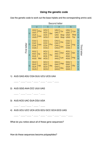 The genetic code worksheet