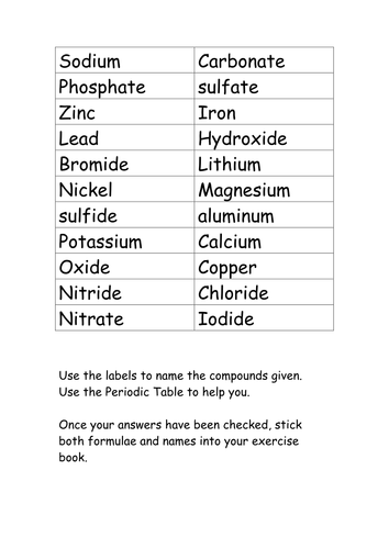Naming Ionic Compounds Worksheet - Easy Hard Science Use this naming ionic compounds worksheet (answers provided) to quickly learn important chemical names and formulas. There are 4 exercises to practice, plus complete instructions, in the 5 page packet. We’ll start from the very beginning, as these chemical names and formulas are a great way to start learning chemistry.