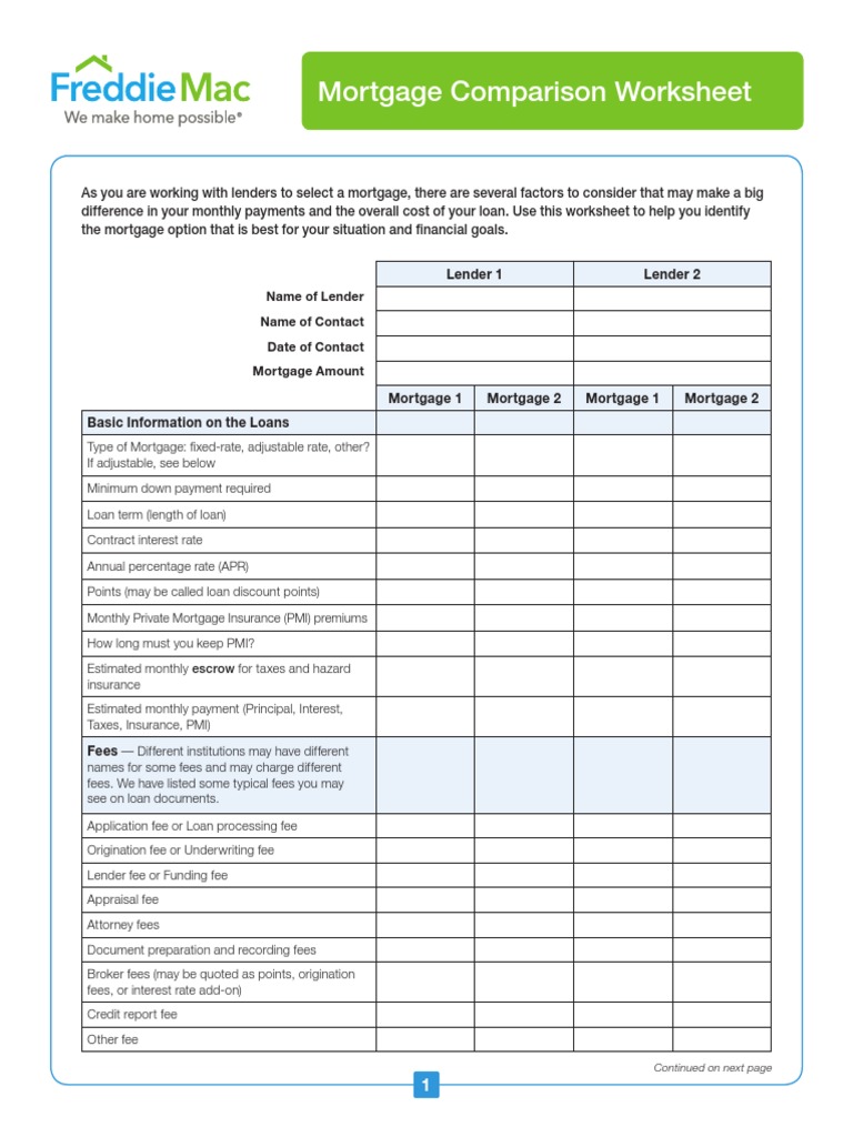 Mortgage loan comparison worksheet
