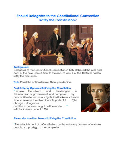 Ratifying The Constitution Teaching Resources | Teachers ... Project: Ratifying the Constitution by Around the World in 180 Days 21 $2.00 Zip Building upon a discussion of The Federalist Papers and The Antifederalist Papers, students will create a poster that either supports of opposes ratification of the Constitution.Ideally, the project uses a sheet of 11 x 17 paper.