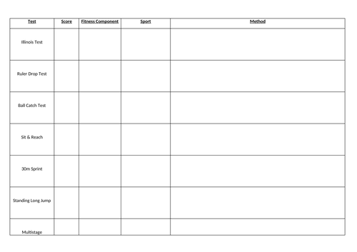 Components of fitness pupil worksheet | Teaching Resources Worksheet for pupils to fill in on components of fitness. The table has the definitions which pupils need to match the component of fitness. It is designed to accompany a practical lesson on testing so that pupils can also fill in which test matches each component. Stations descriptors contain the tests and the teacher sheet has the answers PDF This take-home test is worth 30 points, 20 points for your ... There are 5 parts of fitness: 1) Cardiovascular Endurance, 2) Muscular Strength, 3) Muscular Endurance, 4) Flexibility and 5) Body Composition. C - CARDIOVASCULAR ENDURANCE The most important part of fitness!!! Having conditioned HEARTand LUNGS that can supply the body with oxygen without stress to the heart.