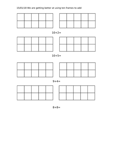 Ten Frames Addition Worksheets For Kindergarten - Mom ... Find the download option for Ten Frames Addition worksheets at the bottom of the article. Help your child gain Math fluency with these Additions to 10 worksheets accompanied by ten frames.. In the first two pages of Additions to 10 worksheets, pdf children will learn to make number 10 in different ways using the shapes and filling the frames with the required number of shapes.