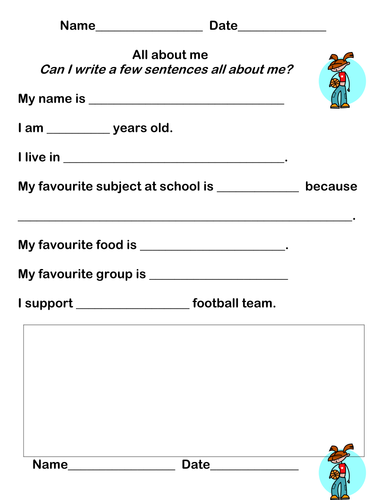 Free All About Me Worksheet - The OT Toolbox Today, I have an exciting free printable for back-to-school: An free All About Me Worksheet! This free all about me PDF is a writing and drawing activity designed specifically to focus on handwriting skills while allowing kids to tell all about themselves. Just print it off and get to know your new students this school year! All about me worksheet