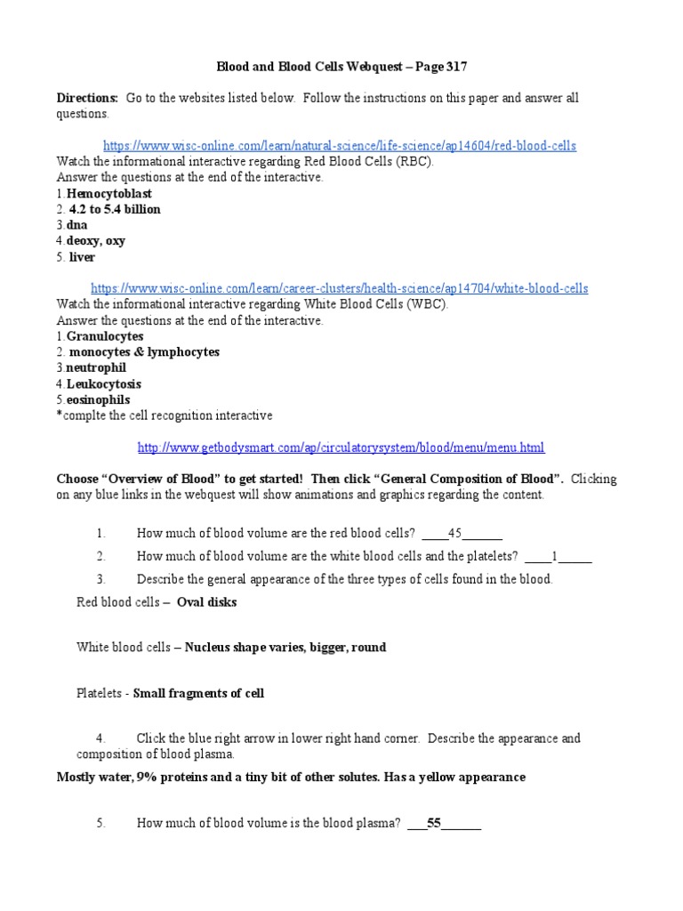 Functions of blood cells worksheet answers. Blood Types Worksheet Answer Key - Studying Worksheets Human Blood Cell Typing Worksheet Answer Key Along with Structure and Functions Of Blood Vascular System. The Codominance Worksheet Blood Types Answer Key can be downloaded at a free trial for a limited time. It will give you an answer key to a multiple choice question. Types Of Symbiosis Worksheet Answer Key. What Do White Blood Cells Do For The Body Brainly - awhatdog What do white blood cells do for the body brainly. Too Many White Blood Cells. In this lesson we will explore the three functions of blood by delving into red blood cells white blood cells and platelets - the three. Blood is a connective tissue vital to our bodys survival. Think of white blood cells as your germ-fighting army. Levels Of Organization Answers - smtp.iita.org Answers" PDF download, a book covers solved quiz questions and answers on chapters: Biodiversity, bioenergetics, biology problems, cell cycle, cells and tissues, enzymes, introduction to biology, nutrition, transport worksheets for school and college revision guide. "Grade 9 Biology Quiz Questions and Answers" PDF download with Page 4/91 PDF Blood Workbook Answers - video.news-journalonline.com blood-workbook-answers 1/1 Downloaded from on November 3, 2020 by guest [eBooks] Blood Workbook Answers Getting the books blood workbook answers now is not type of inspiring means. You could not without help going as soon as book amassing or library or borrowing from your associates to entry them. This is an very easy means ...