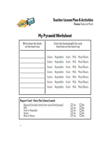 Food pyramid worksheet pdf
