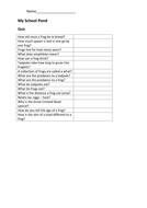 PDF Protection plan for an Important groundwater area — K.A ... measured in the laboratory. The groundwater flows to the water intake area from the esker/delta complex and probably through the rock fracture zone (Fig. 1). The groundwater level is located mainly between 52 and 54 m above sea level and at about 35.5 m in the Koskenmâki water intake area. The intake yield is estimated at a maximum PDF Teacher Notes - Science Spot Provide copies of the lab worksheet to allow students to document their observations. ... found in the pond water samples to determine which organisms were most abundant. Use the data to create graphs or charts to compare the population of several of the species. 5. If you have access to a computer microscope or camera, allow time for students ... PDF Pond Water Pond Water Web WebWeb - Science Spot Pond Water Pond Water Web WebWeb ---- Lesson Plan Lesson Plan Lesson Plan Purpose : As a result of this lesson, students will become familiar with common organisms found in a pond and discover their importance in a balanced aquatic habitat as they create food webs. › biomesBiome/Habitat Animal Printouts - EnchantedLearning.com Or go to a pdf of the worksheet. Biome Report Chart #2 In this printable graphic organizer, the student can organize facts about a biome, including the biome's name, location, weather, plant and animal life (including adaptations, endangered species), a food chain, soil, and general comments. Or go to a pdf of the worksheet. Biome Report Chart #3