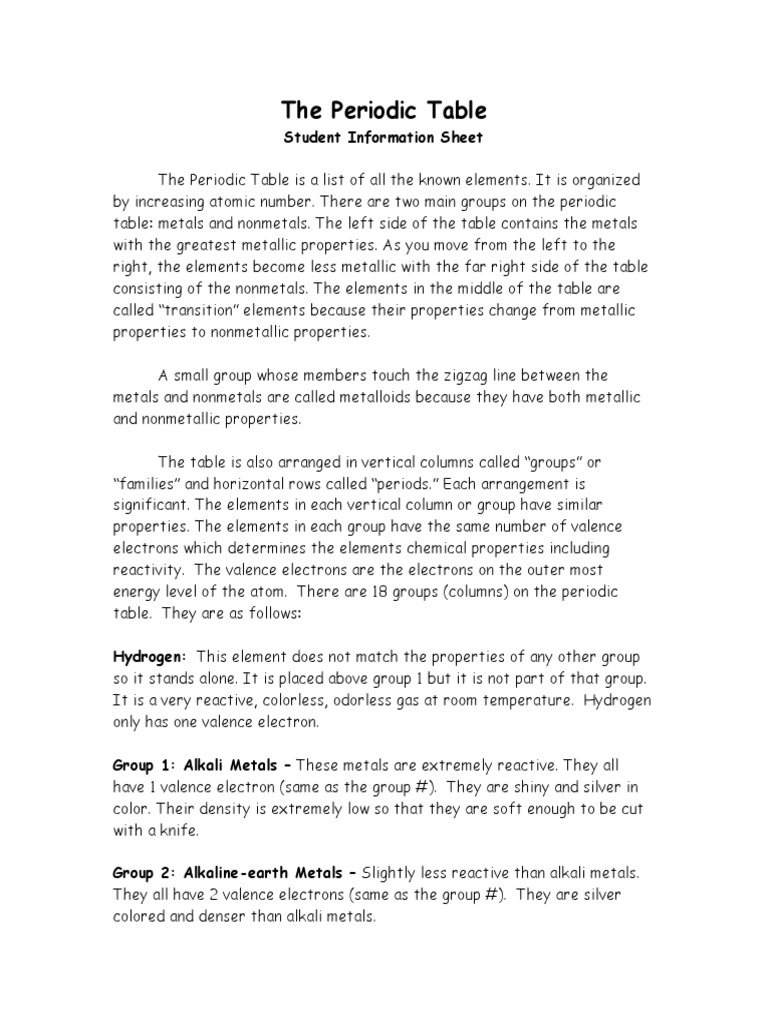 Color Coding The Periodic Table Worksheet Answers | Elcho ... 55 Color Coding The Periodic Table Student Worksheet Answers Periodic Table Mystery Carolina Com Color coding the periodic table color coding the periodic table info sheet color coding the periodic table worksheet for 8th 11th grade free printable periodic table of the elements 11 page set Whats people lookup in this blog: