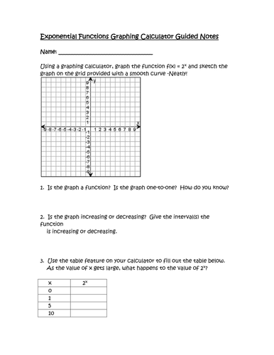 Distance, rate, time word problems - Math Worksheet This free worksheet contains 10 assignments each with 24 questions with answers. Example of one question: Watch bellow how to solve this example: Equations-Distance-rate-time-word-problems-medium.pdf . Download. Downloads: 22584 x. This free worksheet contains 10 assignments each with 24 questions with answers. Example of one question: Watch bellow … Free exponents worksheets - Homeschool Math Exponents Worksheets Create an unlimited supply of worksheets for practicing exponents and powers. Students can solve simple expressions involving exponents, such as 3 3, (1/2) 4, (-5) 0, or 8 -2, or write multiplication expressions using an exponent. The worksheets can be made in html or PDF format (both are easy to print). DOCX Exponential Functions Worksheet - Washington-Liberty Exponential Graphs . Linear and quadratic parent functions are unique. However, there are two types of parent functions for exponential - growth and decay. y = ab x . Exponential growth function the growth factor, b, is always . b> 1 (Ex: _____) ... Exponential Functions Worksheet Exponential Notation Teaching Resources | Teachers Pay ... This MS Word file is a Math 1/Algebra 1 Assessment / Practice Test for:Unit 4 - Exponential Functions and Scientific Notation It consists of fifteen (15) questions and two (2) extra credit item. I used to use this document as my assessment for Unit 4 of my 8th Grade, Math 1 and Algebra 1 classes.
