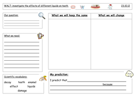 FREE Science Printable Experiment Instructions Space Science Worksheets. Download our space science activities here. There's a pdf of everything you need for a fun space themed science day. Coding Club Plan. KS1 Coding Club Plan. Science Worksheets General Science Experiment Worksheet. Use this to help write up an experiment. Perfect for Key Stage 1 Science - age 4-7 years. Egg and Soda Dental Experiments - ThoughtCo Boil the eggs, making sure to have a few extra in case some of them crack while you boil them. A cracked shell will change the results of the experiment. Help your child fill each of the plastic cups, one with regular soda, one with diet soda, and one with water. Once the eggs have cooled, have your child put one in each cup and leave it overnight. DOCX Humble Independent School District Place the egg in the cup and fill with your solution to cover the egg. Place the cup on the side counter where the teacher tells you to. Procedure Day 2: Carefully remove egg without popping & rinse. Get your 3 measurements . Empty cup of solution, rinse. Place egg back in cup and wait for teacher. Once finished, throw egg away in bag and
