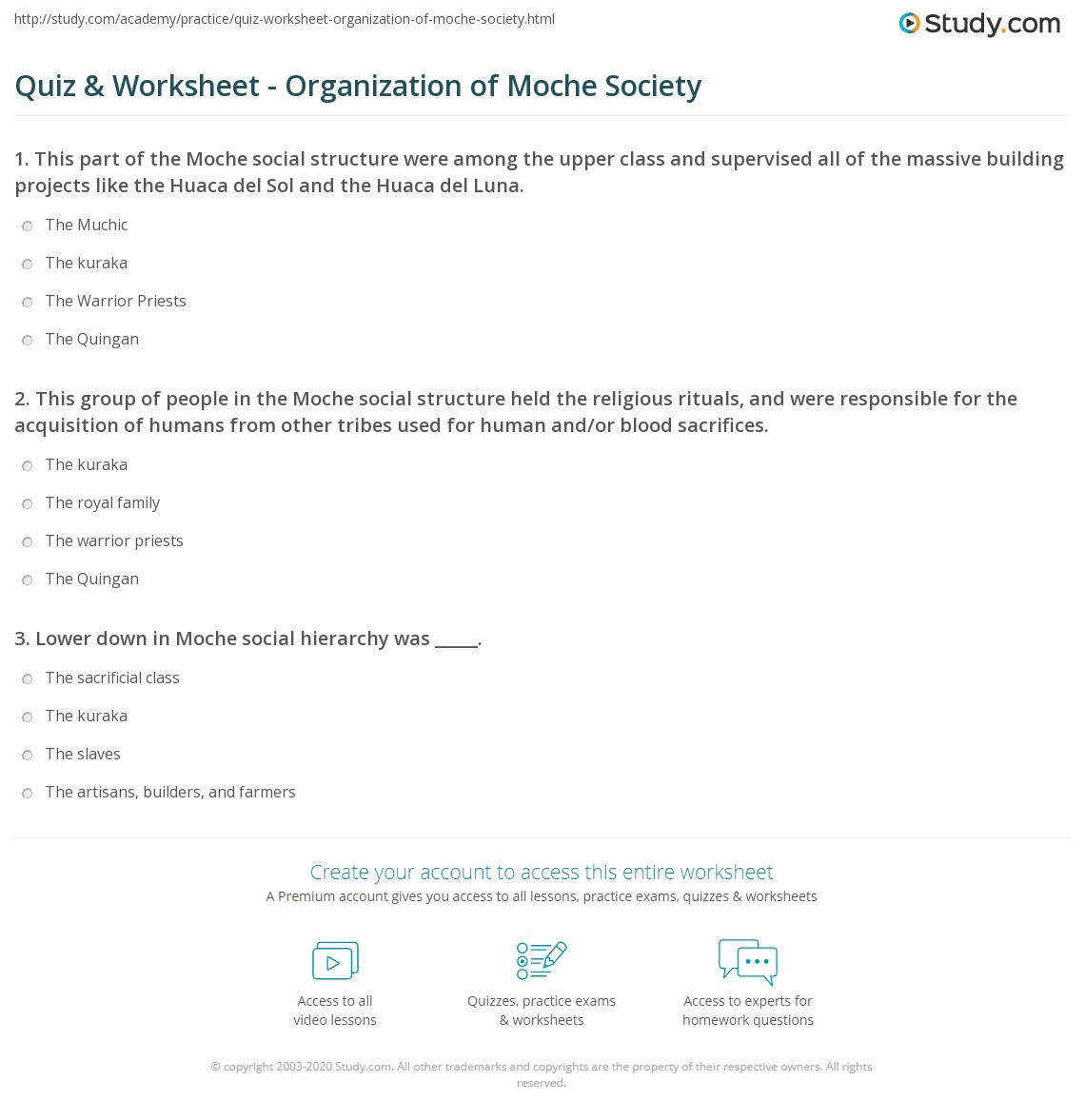 Quiz & Worksheet - Organization of Moche Society | Study.com