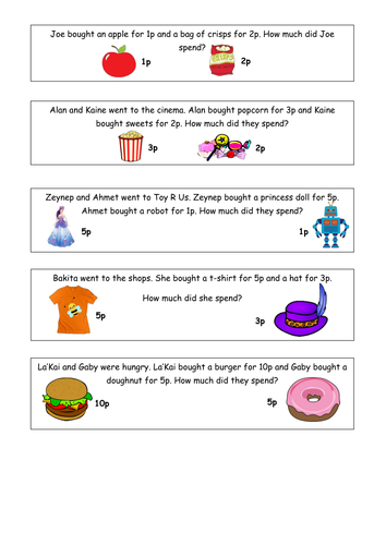 Math Money Word Problems Worksheets, Explanation, Operators Try this Word Problems Worksheet to practice with money word problems that are similar to examples 1 to 4 above. Remind your children that 0.75 is 3 quarters. Three quarters divided by 3 is one quarter or 0.25. Example 5 of 8: Multi-step Money Word Problem Talia is at the mall with her friends. She buys a DVD for {$10.99}.