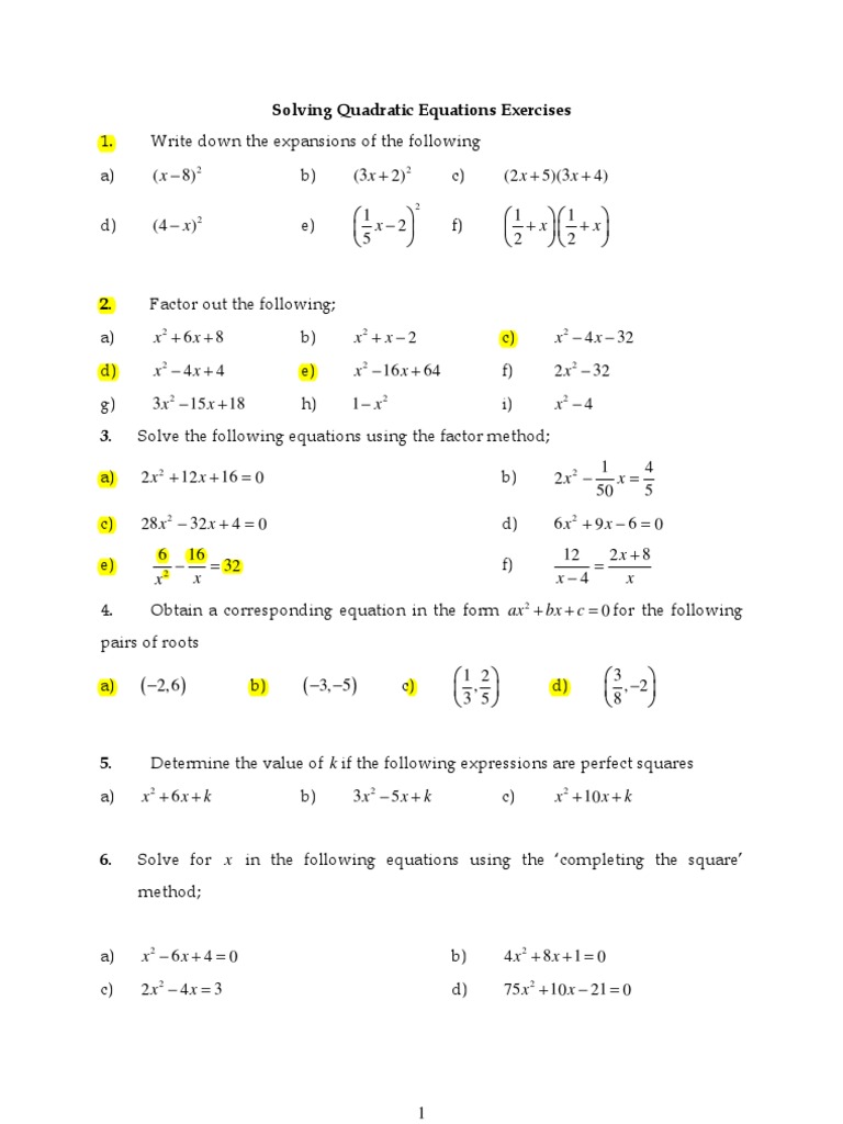 Quadratic Equation Worksheets | Printable Free Online PDFs Quadratic Equation Worksheets | Printable Free Online PDFs Quadratic Equation Worksheets Quadratic equations worksheets are used to help students grasp the concept of algebra with a stronger foundation. These worksheets comprise simple questions which are driven towards building a student's understanding of quadratic expressions.