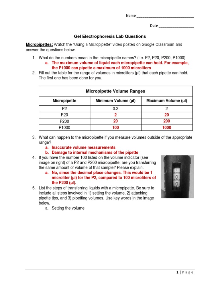 Gel electrophoresis worksheet answer key