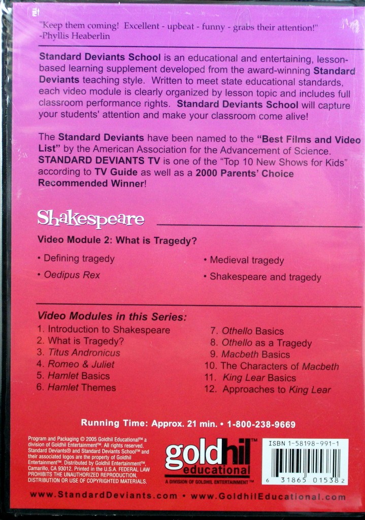 AP Classroom Shakespeare Guides - Gifted Education - BellaOnline A very interesting section of the guide contains a taxonomical worksheet for each act of the play. It has prompts for the students which challenge, "To get an A on this assignment, you must answer this question, plus all of the ones below it." ... Standard Deviants Shakespeare Related Articles Editor's Picks Articles Top Ten Articles ... PDF What is Tragedy? Viewing Guide - Diboll Independent School District Macbeth - perhaps Shakespeare's finest dramatic poetry. An ambitious nobleman murders his way to the throne and destroys his soul in the process. King Lear- perhaps Shakespeare's greatest tragedy. A fairy tale-like play of a king who rashly gives up his kingdom and exiles his loved ones. Through suffering and madness, he redeems himself. Hamlet Movie Questions Teaching Resources | Teachers Pay Teachers These 22 focus questions are created to keep students focused while watching the Standard Deviants "Introduction to Shakespeare" film. They are fully editable and can either be printed out for students to complete or shared with students as a Google Doc.Comes with key.-----*
