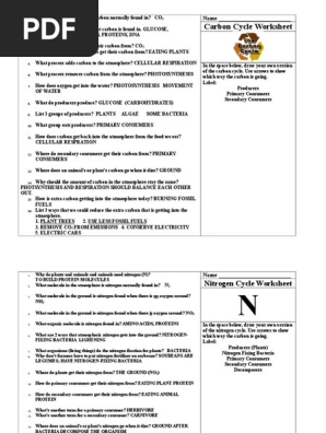 Carbon cycle worksheet pdf. PDF Title: THE CARBON CYCLE - Brooklyn College components of the carbon cycle. Independent Activities: Students will work in pairs completing the carbon cycle. Assessment: Student's ability to work in teams as well as use the materials provided to understan d the different parts of the carbon cycle. Follow-up This short lesson plan provides students with a preliminary Carbon Cycle Activity High School Answer Key Pdf Download EBOOKS Carbon Cycle Activity High School Answer Key PDF Books this is the book you are looking for, from the many other titlesof Carbon Cycle Activity High School Answer Key PDF books, here is alsoavailable other sources of this Manual MetcalUser Guide ... Title: Water Carbon And Nitrogen Cycle Worksheet Answer Key - Bing Created Date: 9/20 ... PDF Carbon Cycle - European Centre for Medium-Range Weather Forecasts Carbon Cycle - European Centre for Medium-Range Weather Forecasts PDF A INTRODUCTION TO THE GLOBAL CARBON C - University of New Hampshire can cycle carbon among various pools within ecosystems and eventually releases it back to the atmosphere. Viewing the Earth as a whole, individual cycles like this are linked to others involving oceans, rocks, etc. on a range of spatial and temporal scales to form an integrated global carbon cycle (Figure 2). On the shortest time scales, of