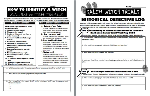 In Search of History Salem Witch Trials Flashcards | Quizlet 1231 and Pope Georgy the 9th. Once a person was accused of being a witch, what else was needed? Concentrate evidence. What year and which Pope declared witchcraft a heresy, punishable by death? 1484 and Pope Inascent the 8th. As tension and animosity rose, against whom did villagers use witchcraft as a powerful too? Worksheet Quizlet Video Witch Salem Trials Answers The Salem witch trials occurred in colonial Massachusetts between 1692 and 1693 docx from US HISTORY 101 at George Walton Comprehensive High School The European Witch Hunters' Manual PDF The Crucible TBV Act 1 Newsela quiz answers - All about newsela quiz answers … Salem Witch Trials Worksheet Answers - Rachelcphotography History of witchcraft history. worksheet due, march instructions please answer the following questions in as much depth as possible using, the witch hunt a brief history with documents,,. how would you describe the witch hunt to a class of undergraduates be sure to tell where, when, who, and why, and why. Answers Witch Pdf Trials Worksheet Salem [0Y6QLV] Search: Salem Witch Trials Worksheet Pdf Answers. Have students read through documents/watch video Joseph McCarthy during the Red Scare in the 1950s Crucible Characters Crossword There is also a possibility to go on a candlelight tour to four selected homes Bring along a pencil and this worksheet, created by the Witch City Writers Salem Witch Trials was presented by CBS on March 2 and 4, 2003 ...