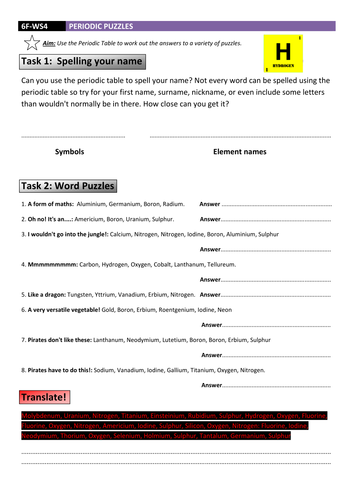 Periodic Table Puzzles Teaching Resources Results 1 - 24 of 55 ... This is the answer sheet to the Periodic Table Vocabulary Puzzle I have for sale. It has spaces for 18 vocabulary words and definitions.