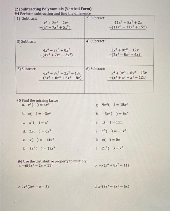 Dividing Polynomials - Los Angeles Valley College Answers to Dividing Polynomials 1) 2 r4 + 4r3 + 3r2 2) x3 + x2 + 5x 3) n 5 + 2 + 1 10n 4) 1 3 + 1 9v + 2 9v2 5) 5v + 2 + 4 9v 6) n + 1 9 + 1 3n 7) 3r + 1 5 + 3 r 8 ... Factoring the Common Monomial Factor Worksheet - SlideShare Jun 23, 2018 · FACTORING TECHNIQUES WORKSHEET * Common Monomial Factor (CMF) Factoring the Common Monomial Factor Worksheet 1. Mathematics 8 Worksheet Algebra 1st Quarter Mr. Carlo Justino J. Luna Republic of the Philippines | DEPARTMENT OF EDUCATION Region III | Division of City Schools | West District Tamarind St., Clarkview Subd., Malabanias, Angeles City School Year 2018-2019 NAME: _____ SCORE ...