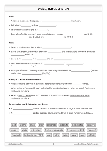 Acid base worksheet high school