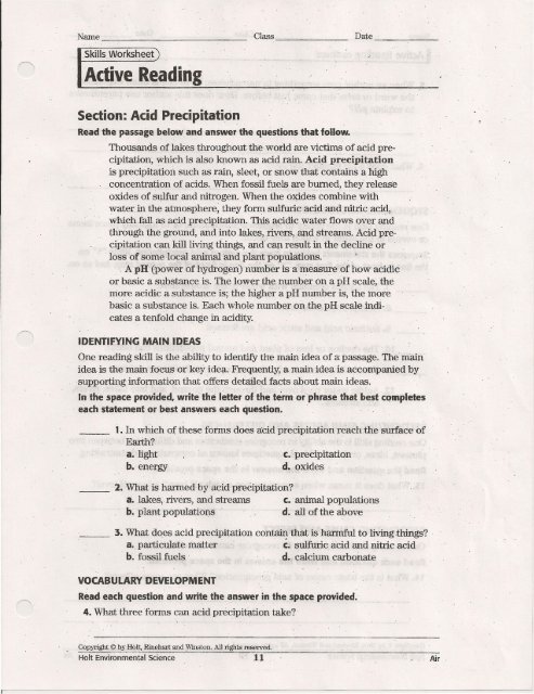 Investigating Acid Rain Worksheet Answers - qstion.co Investigating acid rain worksheet answers. In smith's time, acid rain fell both in towns 10.22 acid rain other contents: Students who participate in fieldwork and data analysis will generate information and data that can be used to raise local awareness about acid rain. The last question includes us maps of the ph ratings of rain. ...