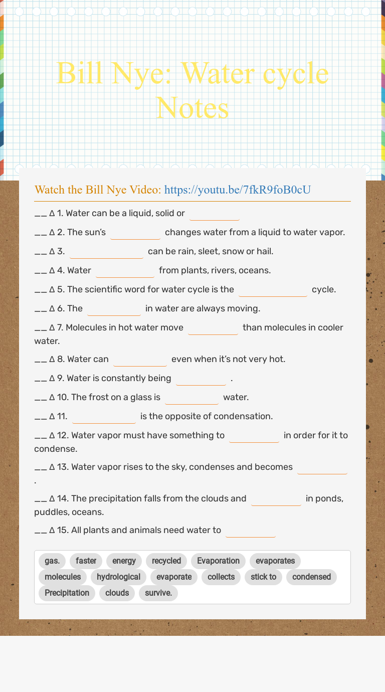 Bill nye water cycle worksheet